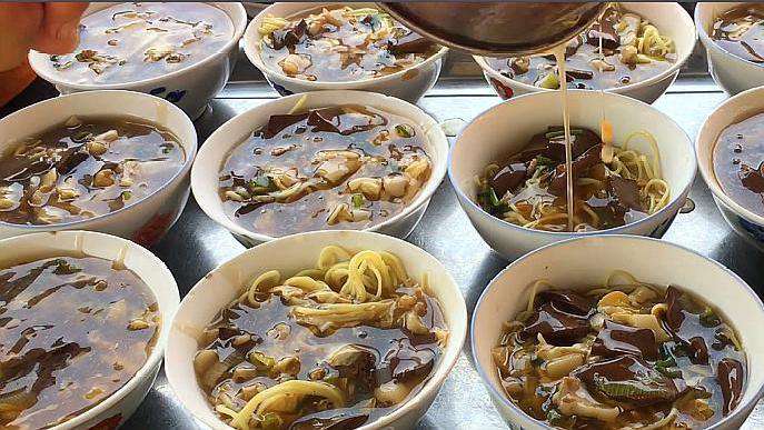 同样,黄县大卤面是手擀的面条,更筋道更顺口。